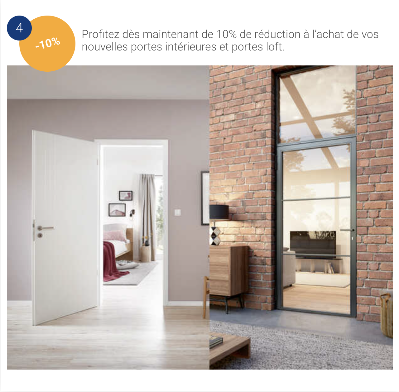 4. Portes d’intérieur : 10% de réduction sur vos portes intérieures et portes loft